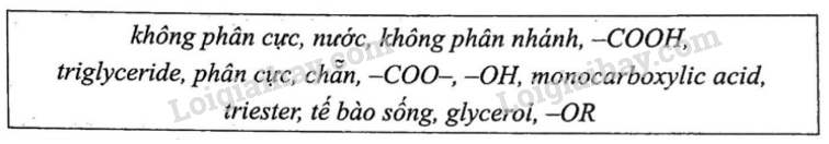 dựa vào khái niệm của ester, acid béo, chất béo, lipid.