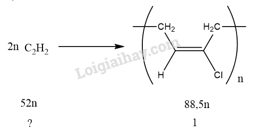 b) Cần bao nhiêu tấn chloropren để sản xuất 1 tấn cao su chloroprene ? Giả sử hiệu suất của phản ứng trùng hợp là 78%.