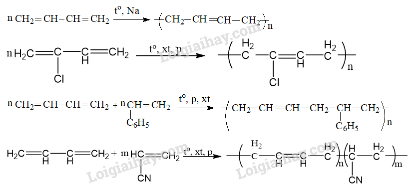 Viết các phương trình điều chế cao su buna, cao su chloroprene, cao su buna-S và ca su buna- N.