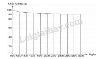 Trong 2 ngày đầu tiên, khối lượng bánh xà phòng giảm nhanh nhất, căn cứ trên biểu đồ là khoảng \(5{\rm{\;g}}\). Trong những chu kì 2 ngày tiếp theo, khối lượng bánh xà phòng tiếp tục giảm nhưng không giảm nhanh như 2 ngày đầu tiên, mức độ giảm chậm dần. Ở' 4 ngày cuối, khối lượng bánh xà phòng hầu như không đổi, ổn định ở mức \(90{\rm{\;g}}\).