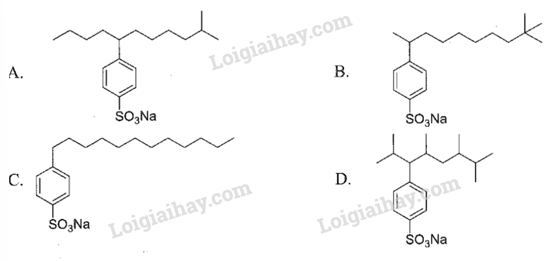 Thông thường, nếu mạch carbon của chất giặt rửa tổng hợp không phân nhánh thì chất tẩy rửa đó dễ phân hủy sinh học hơn so với mạch carbon phân nhánh. Chất tẩy rửa nào sau đây thân thiện với môi trường nhất?