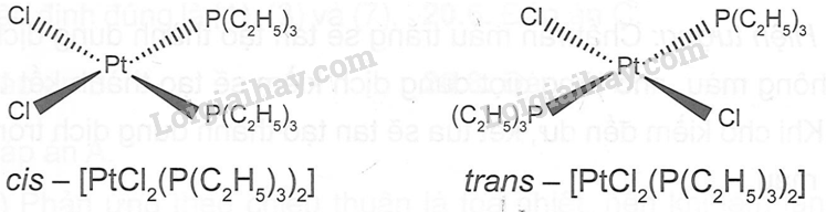Công thức phân tử của phức chất là : [PtCl2(P(C2H5)3)2]. Từ đó vẽ được dạng hình học của hai đồng phân cis và trans.