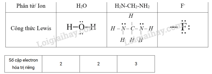 Xét phân tử H2O, phân tử hydrazine H2N–CH2-NH2 và anion F- . Cho biết: