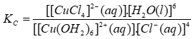 (aq) [CuCl4]2-(aq) + 6H2O(l) KC = 4,18.105