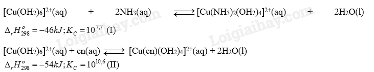 (b) Sự thế H2O trong phức chất [Cu(OH2)6]2+ bởi NH3 tạo ra phức chất bền hơn so với sự thế H2O trong phức chất [Cu(OH2)6]2+ bởi en.