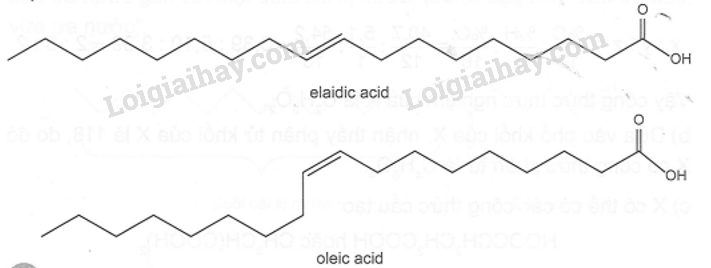 Oleic acid và elaidic acid là các acid béo đồng phân hình học của nhau, trong đó oleic acid có liên kết đôi C=C ở dạng cis và elaidic acid có liên kết đôi C=C ở dạng trans.