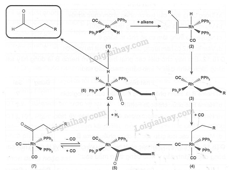 Vì vậy, HRh(CO)(PPh3)2 được tổng hợp để thay thế xúc tác ban đầu. Cơ chế của phản ứng sử dụng xúc tác HRh(CO)(PPh3)2 được trình bày theo sơ đồ bên dưới.
