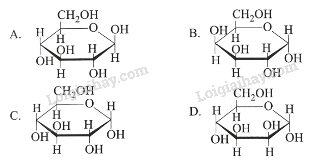 Công thức nào dưới đây phù hợp với công thức cấu tạo của β – glucose?