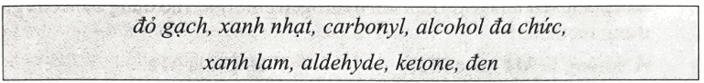 (1): xanh nhạt; (2): xanh lam; (3) alcohol đa chức; (4) aldehyde.