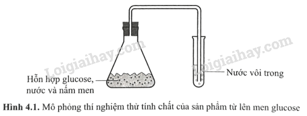 Trong quá trình sản xuất rượu vang, người ta sử dụng nấm men Saccharomyces cerevisiae để lên men glucose và fructose (có trong dịch ép trái nho) tạo thành ethanol. Một học sinh thực hiện thí nghiệm thử tính chất của sản phẩm từ quá trình lên men này trong phòng thí nghiệm bằng dụng cụ như ở Hình 4.1. Mô tả và giải thích hiện tượng xảy ra trong ống nghiệm.