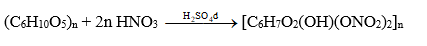 Chất X là thành phần chính của bông vải. Cho chất X tác dụng với hỗn hợp HNO3 và H2SO4 đặc để điều chế chất Y dùng làm vecni, phim ảnh,… Hàm lượng nitrogen trong chất Y khoảng 11,12%. Xác định công thức phân tử chất Y và viết phương trình hóa học của phản ứng tạo thành chất Y từ chất X.