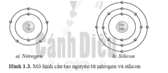 Quan sát hình ảnh mô tả cấu tạo nguyên tử nitrogen và silicon (hình 1.3), cho