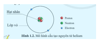 Gọi tên các thành phần của một nguyên tử (hạt nhân, proton, neutron, electron) được mô tả như hình 1.1 dưới đây.