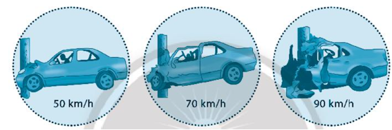 Quan sát hình ta thấy theo mức độ tăng dần của tốc độ thì độ biến dạng (hay hư hỏng) của chiếc xe càng lớn, nên tốc độ càng lớn sẽ càng làm tăng mức độ thiệt hại do tai nạn giao thông gây ra.