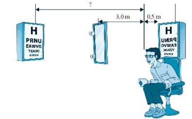 Khi việc kiểm tra thị lực được thực hiện trong một căn phòng nhỏ, người ta thường sử dụng gương phẳng để làm cho các các chữ cái và số trên bảng đo thị lực xuất hiện xa mắt hơn.