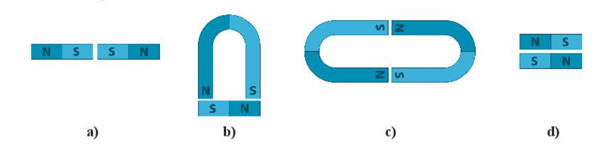 Hãy chỉ rõ tương tác (lực hút hoặc lực đẩy) giữa các nam châm trong hình dưới đây.