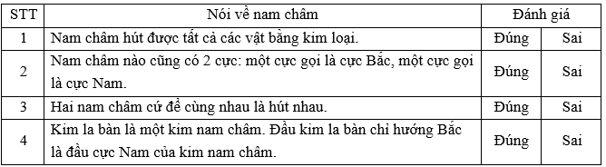 Hãy khoanh vào từ “đúng” hoặc “sai” trong các câu dưới đây khi nói về nam châm.