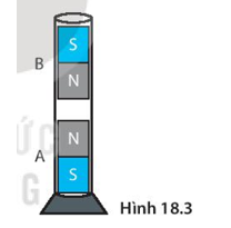 Quan sát hai thanh nam châm đặt trong ống thủy tinh ở hình 18.3. Tại sao thanh nam châm B lại lơ lửng ở phía trên nam châm A?