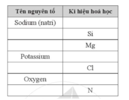 a) Hoàn thành những thông tin còn thiếu về tên hoặc kí hiệu hoá học của các nguyên tố trong bảng sau.