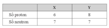 Thành phần hạt nhân của hai nguyên tử X và Y được cho trong bảng sau: