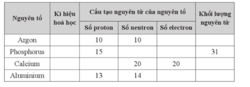 Cho biết những nguyên tử nào trong bảng dưới đây thuộc cùng nguyên tố hoá học.