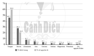 Hình 2. Biểu đồ mô tả tỉ lệ phần trăm của một số nguyên tố hoá học trong lớp vỏ Trái Đất (Nguồn: W. M Haynes, D. R Lide and T.J. Bruno (2016). Abundance of Elements in the Earth’s Crust and in the Sea. CRC Handbook of Chemistry and Physics. 97(2402), 14-17).