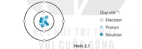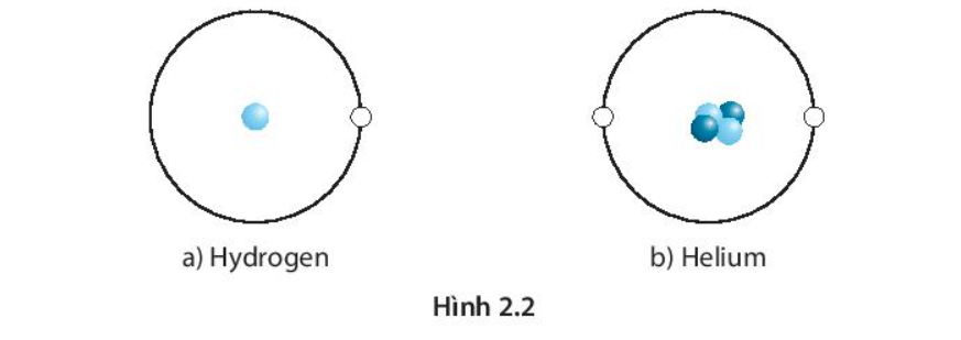 - Ví dụ về nguyên tử He (ở Hình 2.2) có 2 electron ở vỏ electron, 2 proton và 2 neutron ở hạt nhân.