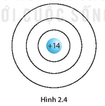 Trong hạt nhân nguyên tử của nguyên tố silicon có 14 proton, vỏ nguyên tử silicon có ba lớp electron. Hãy hoàn thiện hình 2.4 để mô tả mô hình một nguyên tử silicon.