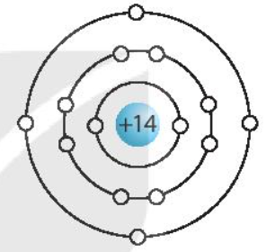 Nguyên tử silicon (Số electron = Số proton = 14)