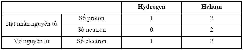- Dựa vào dữ kiện bài 2.7 trong sách bài tập để biết số proton và electron của nguyên tử hydrogen và helium.