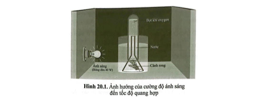 - Đặt đèn cách ống nghiệm chứa cành rong đuôi chó 10 cm.