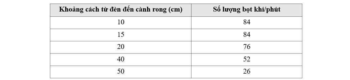 - Lặp lại thí nghiệm này cho các khoảng cách khác nhau giữa đèn và ống nghiệm chứa cành rong đuôi chó.