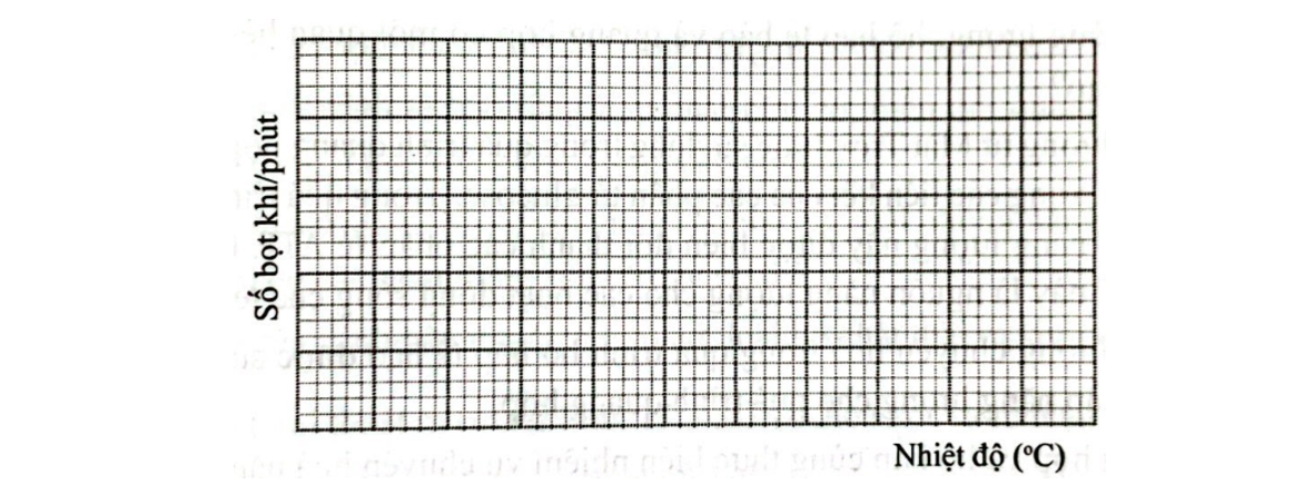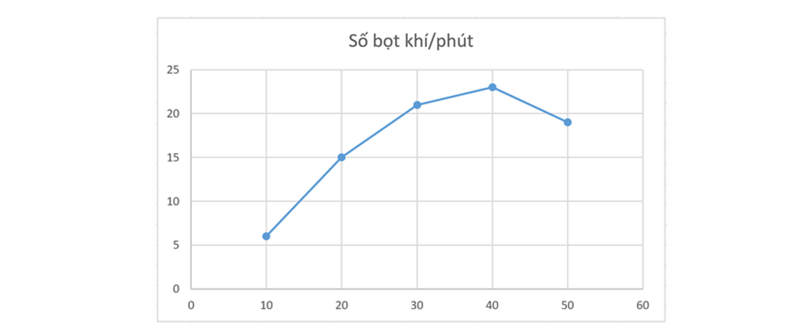 a) Từ số liệu trong bảng, em hãy vẽ biểu đồ thể hiện mối quan hệ giữ nhiệt độ và số lượng bọt khí đếm được trong mỗi phút.