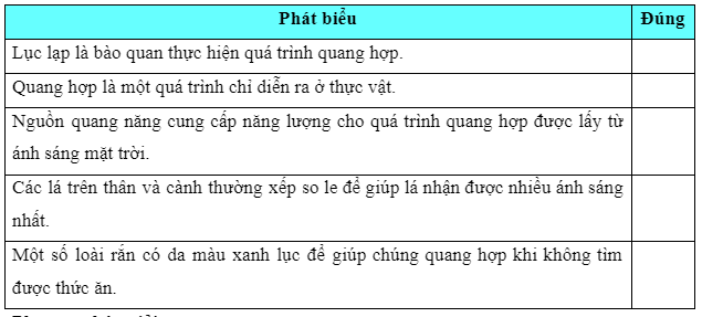 D. Quang hợp là quá trình sinh lí quan trọng xảy ra trong cơ thể mọi sinh vật.