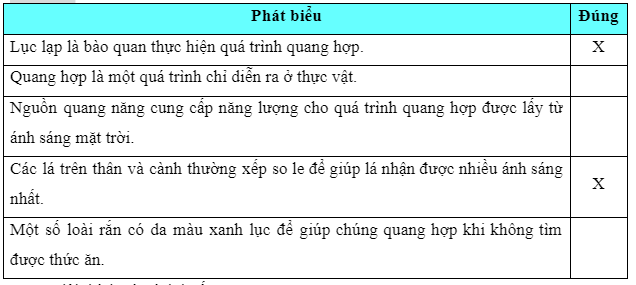 Trao đổi chất và chuyển hóa năng lượng luôn diễn ra đồng thời trong quá trình quang hợp.