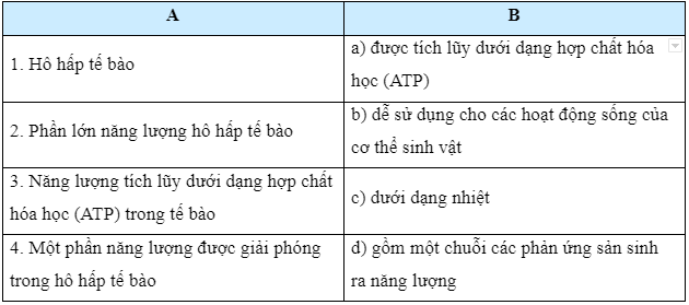 Kết nối các thông tin ở cột A với cột B trong bảng để được nội dung phù hợp.