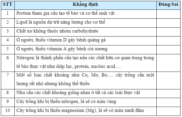 Các khẳng định sau đây đúng hay sai?