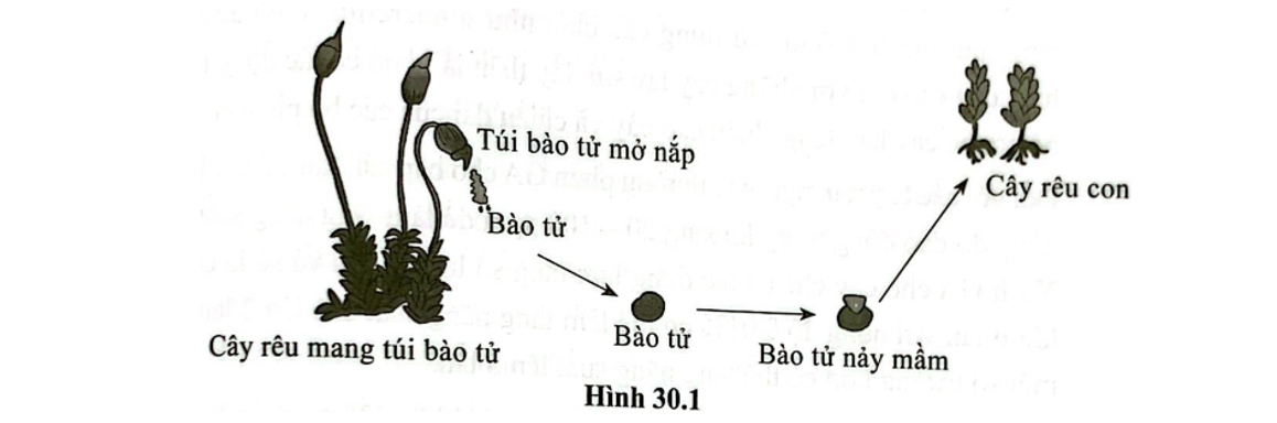 Dựa vào sơ đồ Hình 30.1 ta có thể phát biểu được các giai đoạn trong sự sinh trưởng và phát triển của cây rêu.