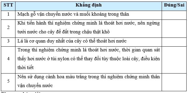 Từ kết quả quan sát được, bạn An rút ra kết luận: Hơi nước trong túi nylon là do lá thoát ra. Tuy nhiên, bạn Thủy cho rằng trong các bước thí nghiệm của An có một bước đã tiến hành chưa chính xác, vì vậy chưa thể rút ra kết luận như vậy được.