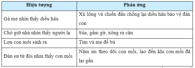 Tìm hiểu một số tập tính của động vật rồi hoàn thành thông tin trong bảng theo mẫu sau: