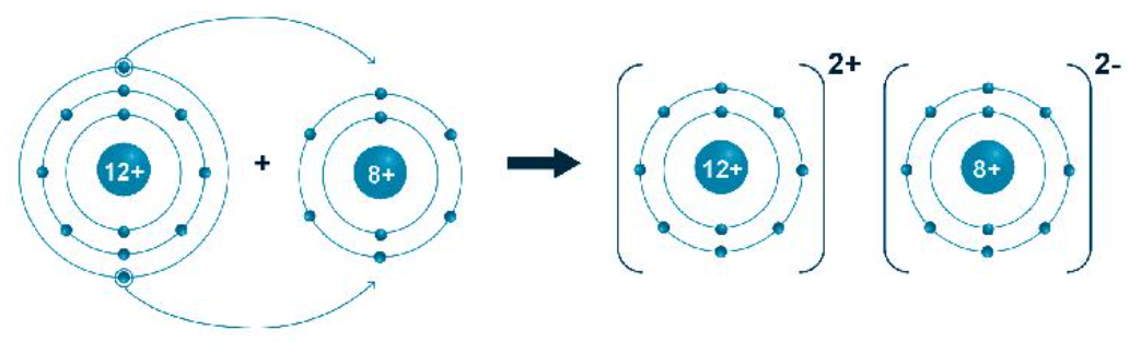 + Nguyên tử của nguyên tố magnesium nhường 2 electron lớp ngoài cùng để tạo thành ion dương có 8 electron lớp ngoài cùng bền vững.