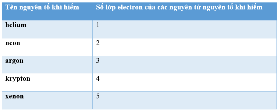 B. Vỏ nguyên tử của các nguyên tố khí hiếm đều có cùng số lớp electron,