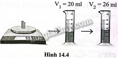 b) Từ kết quả thí nghiệm ở hình 14.4, xác định khối lượng riêng của vật rắn đó theo đơn vị g/ml.