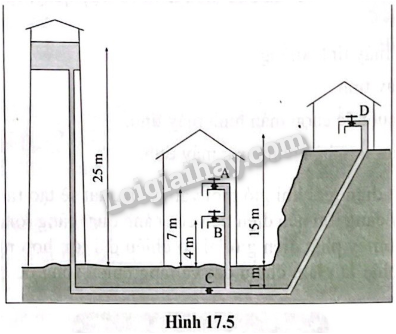 Một tháp nước cung cấp nước sạch cho các dân cư ở xung quanh. Hãy so sánh áp suất của nước tại các điểm A, B, C và D ở hình 17.4.