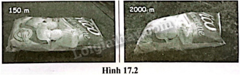Quan sát thể tích của gói bánh khi một người leo núi cầm theo ở độ cao 150 m và ở độ cao 2.000 m so với mực nước biển (hình 17.2). Vì sao lại có sự thay đổi thể tích như vậy?