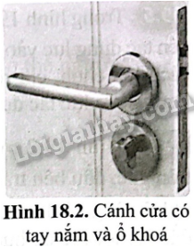Hình 18.2 là ảnh chụp một cánh cửa có tay nắm và khoá. Hãy kể ra những vật có thể quay được khi có lực tác dụng. Mô tả rõ trục quay, lực tác dụng làm quay trong mỗi trường hợp.