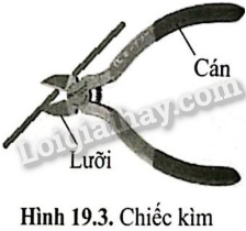 Ở chiếc kìm cắt dây thép (hình 19.3), mỗi nhánh kìm gồm cán và phần lưỡi cắt có thể quay quanh chốt cố định, có vai trò như đòn bẩy. Hãy sử dụng các mũi tên biểu diễn lực để mô tả cách dùng lực tác dụng lên cán kìm để cắt được dây thép.