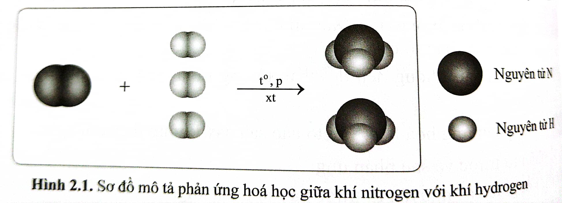 Ammonia (NH3) là nguyên liệu dùng để điều chế phân đạm và một số chất khác. Ammonia được điều chế từ khí hydrogen (H2) và khí nitrongen (N2) trong điều kiện nhiệt độ thích hợp, áp suất cao và có sắt làm chất xúc tác theo sơ đồ (hình 2.1) sau: