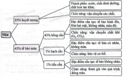 Hãy tóm tắt đặc điểm cấu tạo, chức năng của máu theo sơ đồ dưới đây.