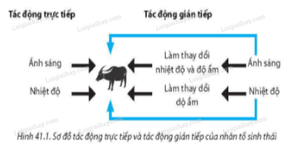 Quan sát Hình 41.1 sau đây, hãy nêu tác động trực tiếp và tác động gián tiếp của một số nhân tố sinh thái đến đời sống của một loài động vật. Tại sao cần tìm hiểu về tác động trực tiếp và gián tiếp của các nhân tố sinh thái?